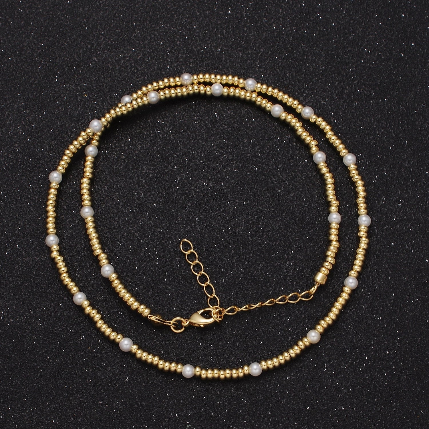 18K Gold Filled 3mm Beaded Necklace with Pearl For Layering